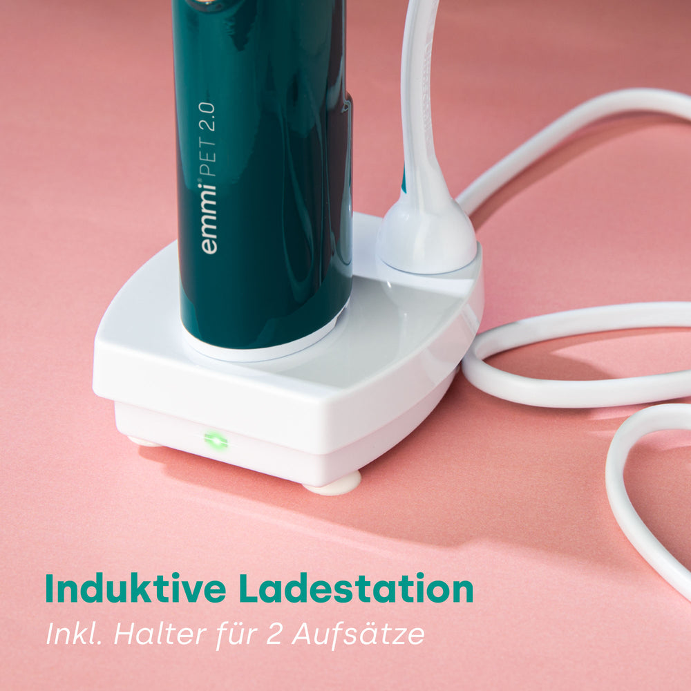 Die emmi-pet 2.0 steht an der Spitze der Innovation im Bereich der Hunde-Mundpflege und vereint Komfort mit Effizienz. Diese Ultraschallzahnbürste für Hunde ist speziell dafür konzipiert, sowohl für dich als Hundebesitzer als auch für deinen Hund eine stressfreie und angenehme Erfahrung zu bieten. Ihre benutzerfreundliche Gestaltung erleichtert es dir, unabhängig von deiner Erfahrung, die tägliche Zahnreinigung deines Vierbeiners mühelos und effektiv durchzuführen.