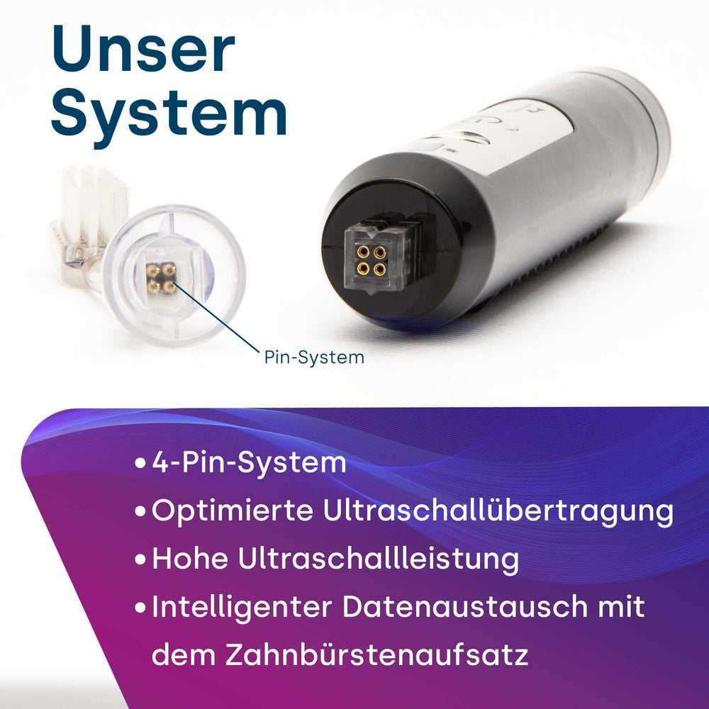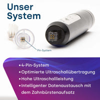 - Intelligentes 4-Pin-System: Optimierte Ultraschallübertragung für maximale Effizienz und intelligente Kommunikation mit dem Bürstenkopf.