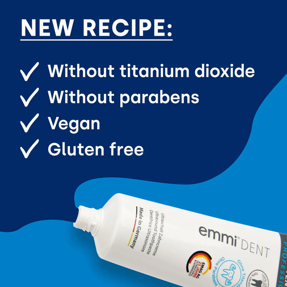 Discover the improved world of emmi-dent Whitening toothpaste - now titanium dioxide and paraben-free! Experience the same powerful whitening effect, but with an even more natural formula. The absence of titanium dioxide makes our toothpaste gentle and gentle, perfect for sparkling white teeth without compromise. Enjoy the best of natural dental care and a radiant smile!