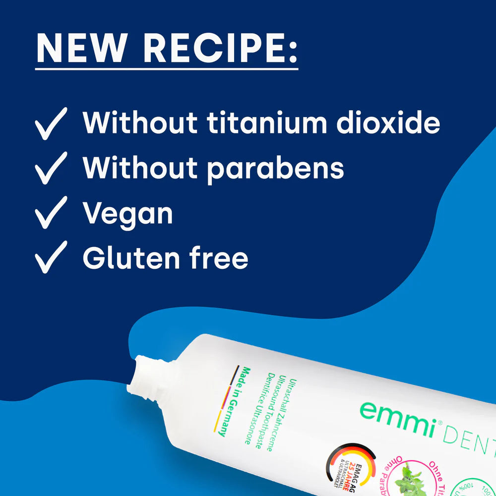 The emmi-dent Fresh toothpaste is ideal for sensitive teeth. It cleans gently, strengthens the gums and fights plaque and tartar. With natural ingredients, it ensures fresh breath and a clean feeling thanks to the revolutionary ultrasound technology.