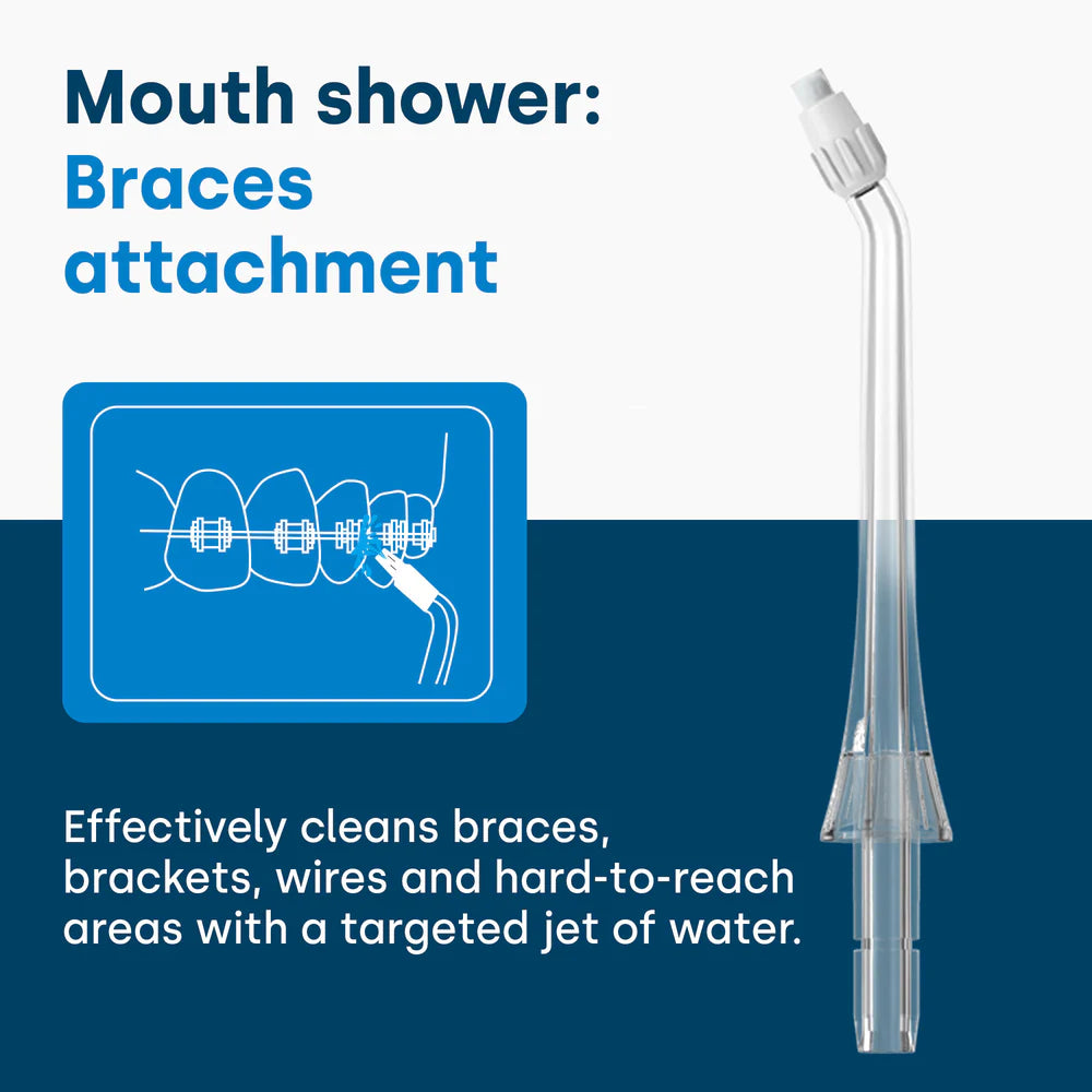 The oral irrigator is particularly valuable for people with braces, bridges or implants. It reaches hard-to-reach areas and removes deposits around the braces and implants.