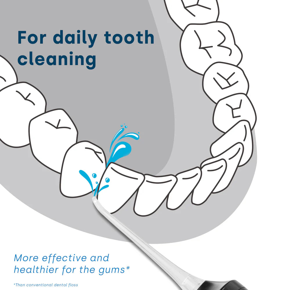 The oral irrigator is ideal for cleaning the spaces between teeth thoroughly and effectively, where conventional brushing is often not sufficient. It removes food particles and plaque that can accumulate there.