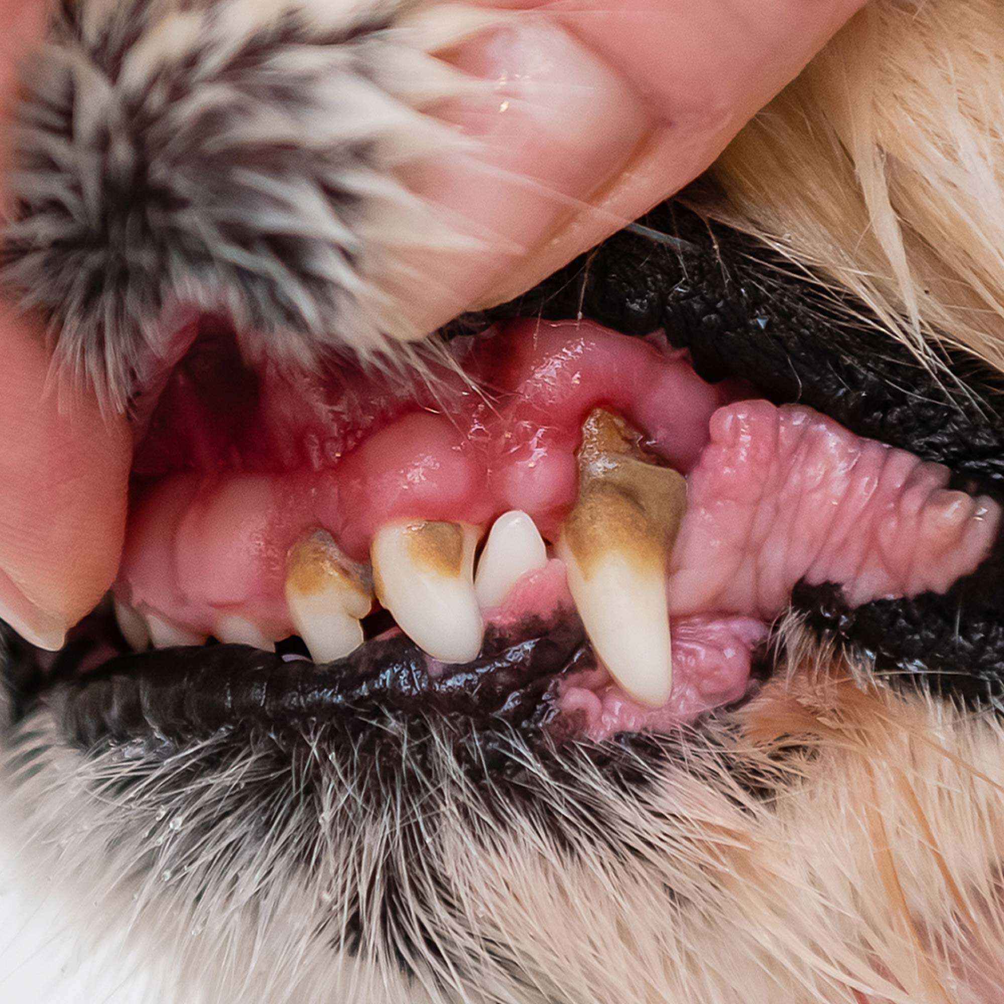 After just a few days without dental care, the biofilm turns into plaque, which quickly hardens into tartar. This leads to painful inflammation, bad breath and an increased risk of diseases such as heart or kidney problems. Poor dental hygiene directly affects your dog's health and quality of life.