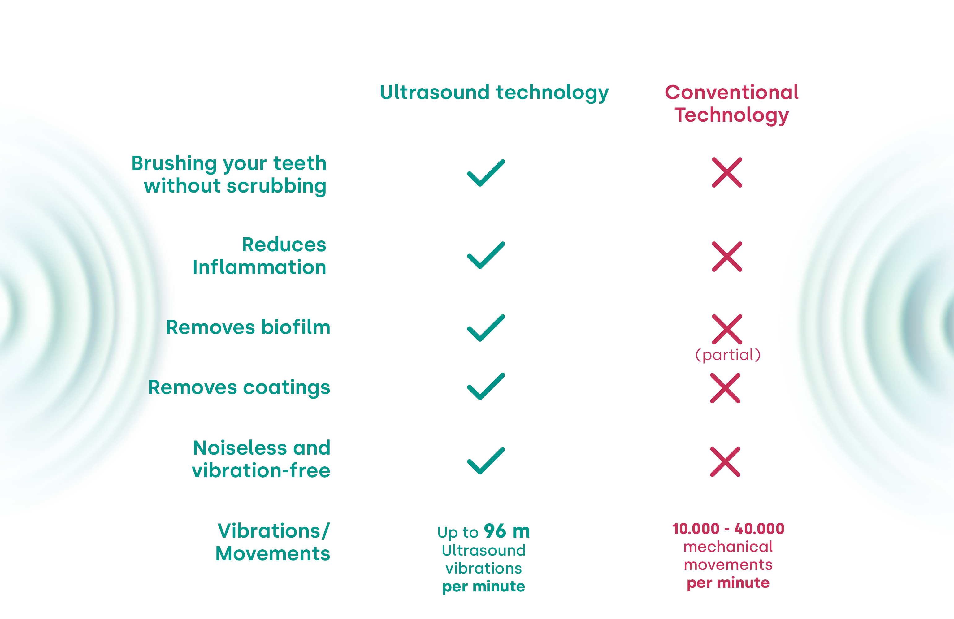 - Up to 96 million ultrasonic vibrations per minute