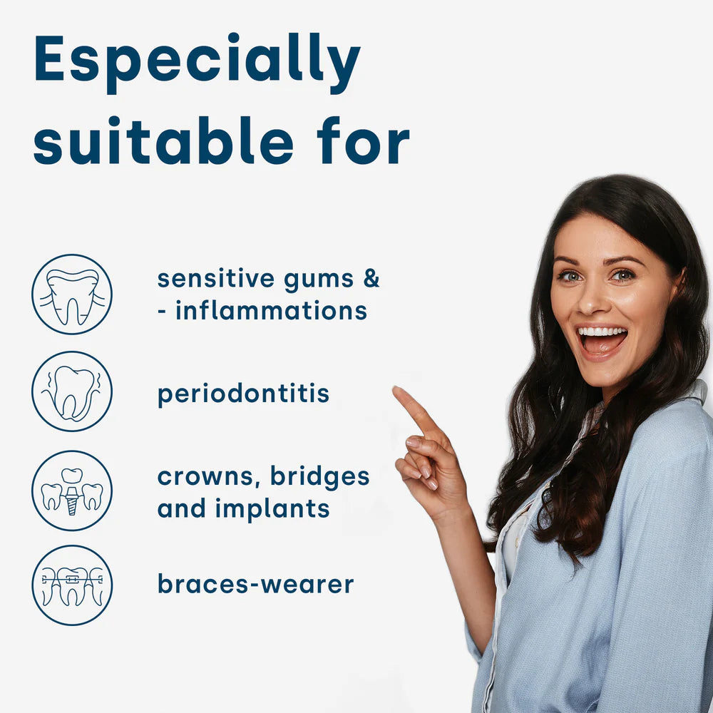 In addition to daily dental care with our emmi-dent Ultrasonic toothbrush, we still recommend that you use our dental floss, interdental brush or the application of a mouthwash.