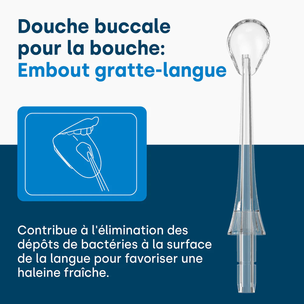 Un embout spécial peut être utilisé pour nettoyer la surface de la langue et ainsi lutter contre la mauvaise haleine.