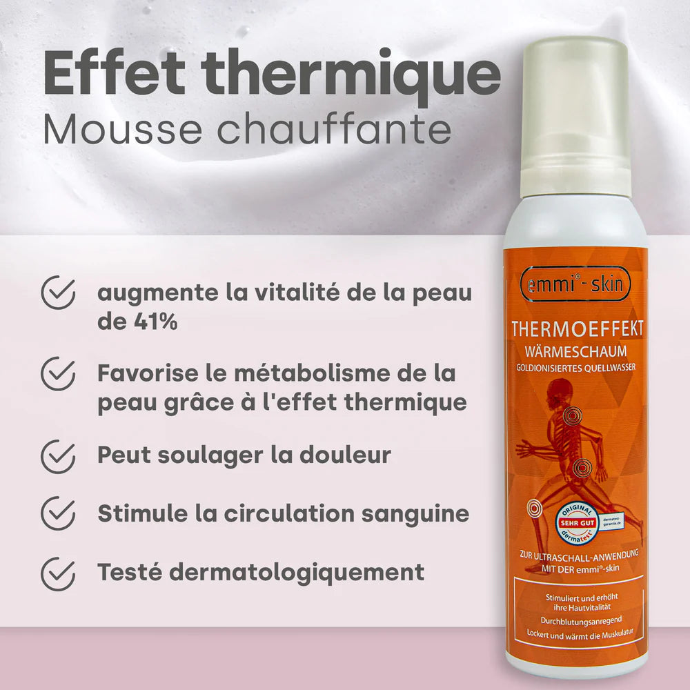 Lors des essais sur le terrain au cours des 4 dernières années, l'utilisation de peau emmi un effet anti-âge étonnant (en combinaison avec le Gel crème à ultrasons à l'acide hyaluronique) prouvé. Grâce à l'effet antibactérien des ultrasons, même les douleurs articulaires et musculaires peuvent être guéries (en combinaison avec le effet thermique) plus rapide. Les impuretés de la peau telles que les points noirs, l'acné, les boutons et également les infections fongiques sont réduites. La peau terne et stressée retrouve en un rien de temps sa beauté et sa santé.