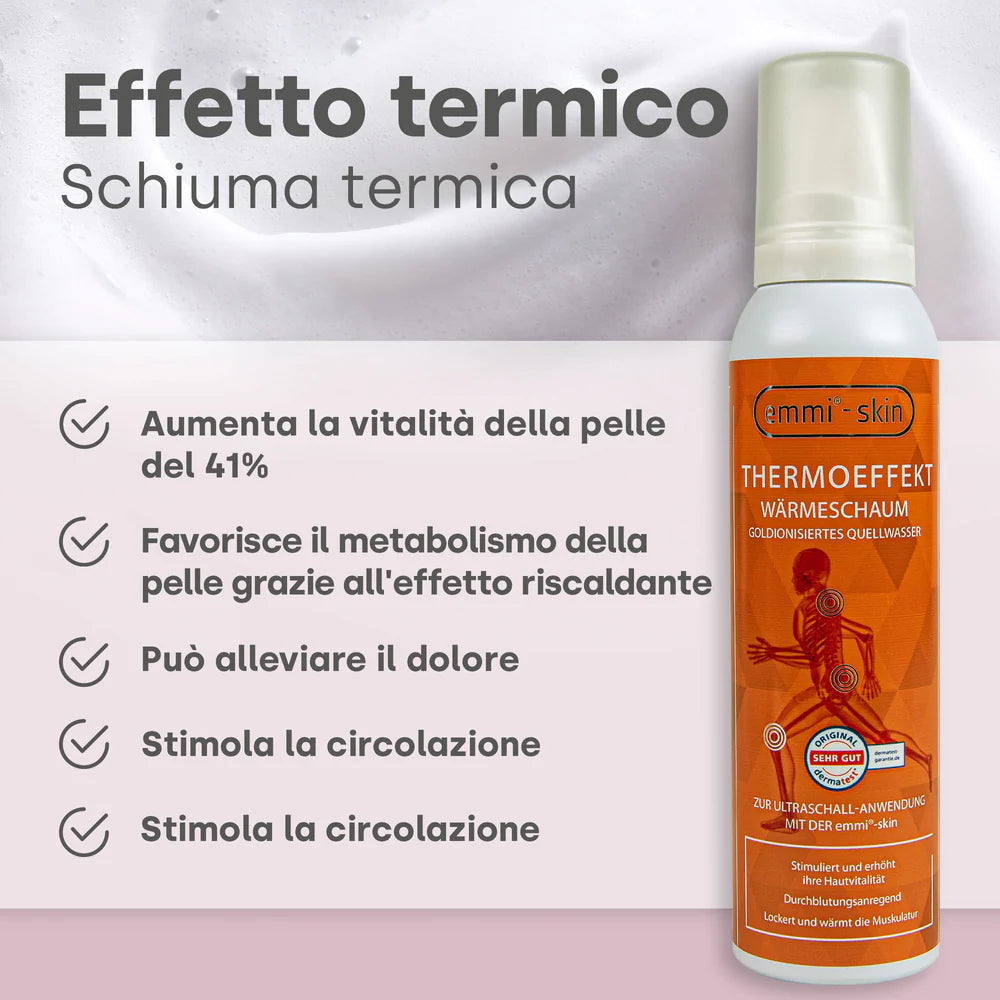 Nelle prove sul campo degli ultimi 4 anni, l'uso di emmi-pelle un sorprendente effetto anti-invecchiamento (in combinazione con l' Crema gel ultrasonica all'acido ialuronico) dimostrato. Grazie all'effetto antibatterico degli ultrasuoni, anche i dolori articolari e muscolari possono essere curati (in combinazione con l' effetto termico) Più veloce. Si riducono le impurità della pelle come punti neri, acne, brufoli e anche le infezioni fungine. In poco tempo la pelle spenta e stressata torna ad apparire bella e sana.