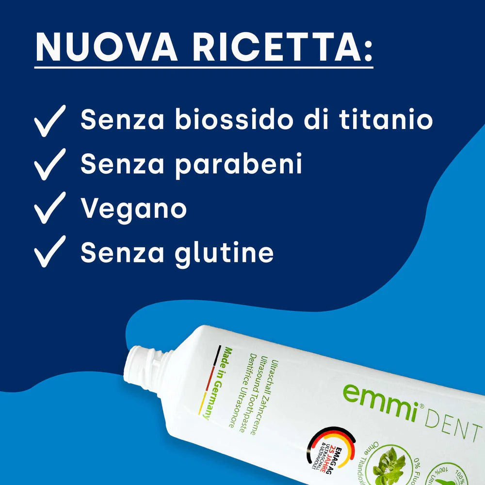 A emmi-dent Diamo grande importanza alla qualità e alla naturalezza. Il nostro dentifricio Nature Ultrasonic contiene ingredienti naturali accuratamente selezionati che si prendono cura e proteggono efficacemente i tuoi denti. Fidati di emmi-dent e goditi i vantaggi di cure odontoiatriche di alta qualità, senza fluoro e biossido di titanio.