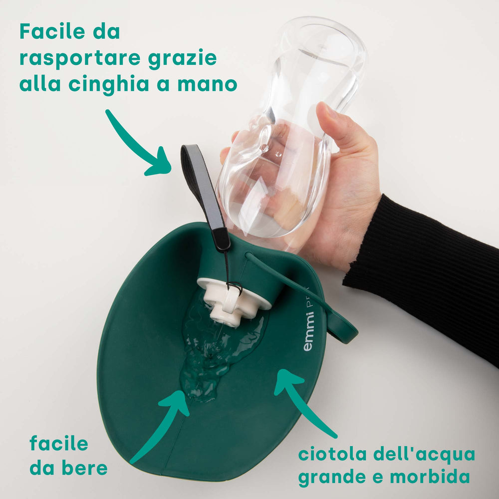 Quando fanno esercizio fisico o quando fa caldo, i cani hanno bisogno di molta acqua. Quando si viaggia o si fa una passeggiata, a volte non è facile fornire acqua fresca al proprio amico a quattro zampe. Durante il cammino non c'è da stupirsi se l'animale ha sete e beve da pozzanghere o stagni. Ma l'acqua può contenere germi e causare problemi digestivi. Ecco perché la borraccia per cani emmi-pet è la soluzione ideale per chi è in viaggio. Con la borraccia da viaggio avrai sempre a portata di mano molta acqua.