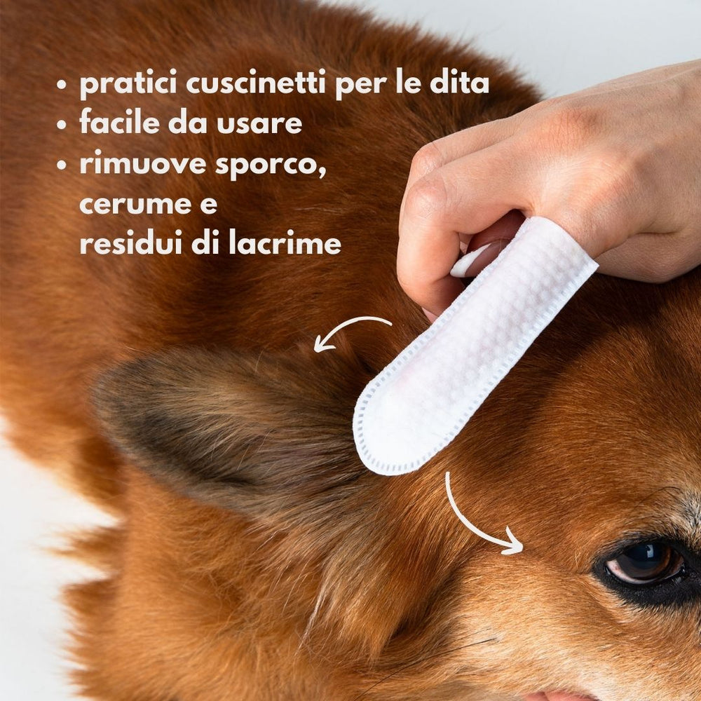 - Applicazione versatile: Le pregiate salviette per le dita non sono adatte solo per la pulizia di orecchie, mento e occhi, ma sono perfette anche per la cura di altre parti del corpo dell'animale.