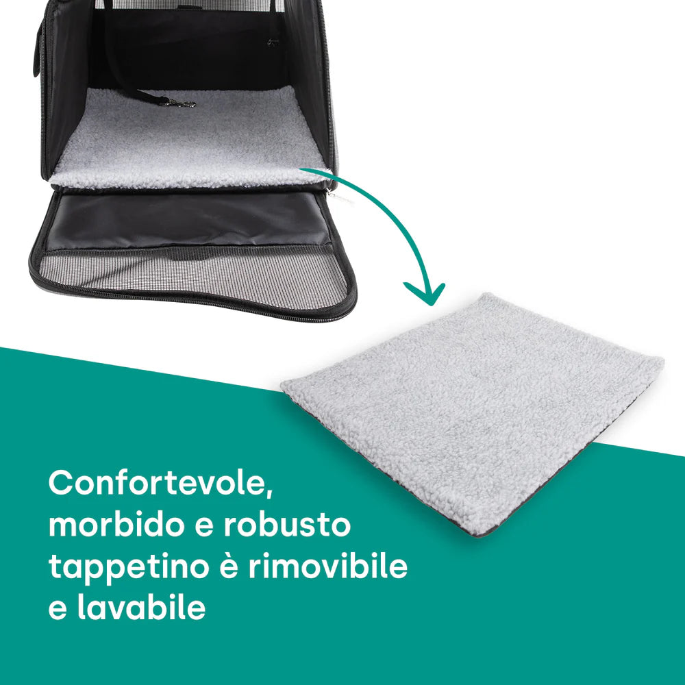 - In grado di viaggiare: Grazie alle sue dimensioni (41,5 x 32 x 30), il box per il trasporto è adatto anche per i viaggi in aereo. Questo può variare a seconda della compagnia aerea.