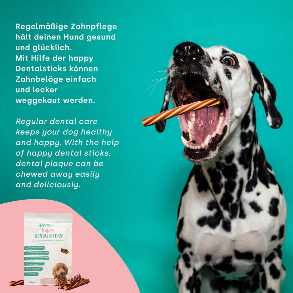 Los palitos pulidores de dientes emmi-pet ofrecen a los perros una combinación de cuidado dental fácil y disfrute. Con un delicioso aroma a pollo y piel de res, los palitos son irresistibles para tu amigo de cuatro patas. Al masticar, el palito garantiza una limpieza profunda de los dientes y ayuda a reducir la placa y el sarro, para un aliento fresco y unos dientes sanos.