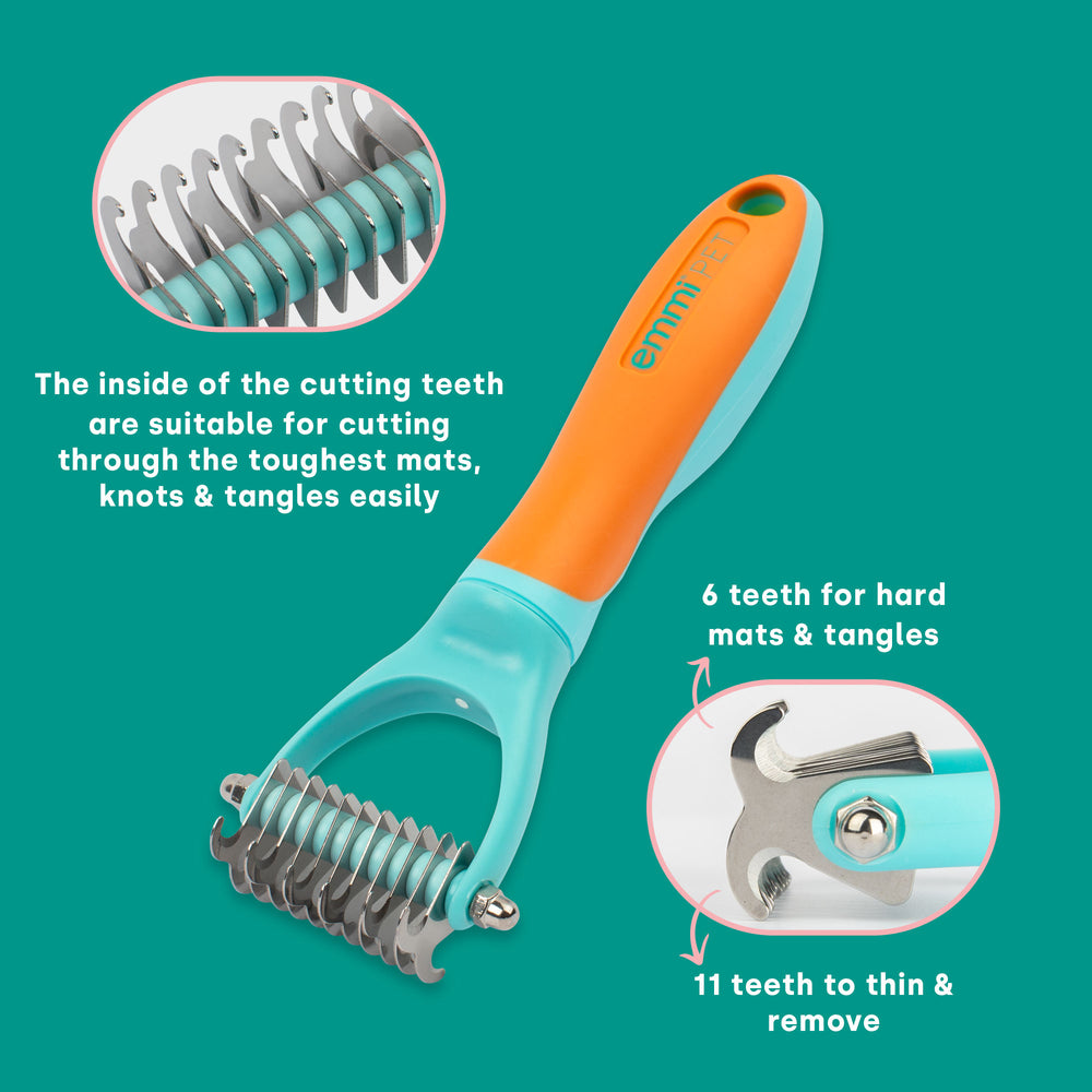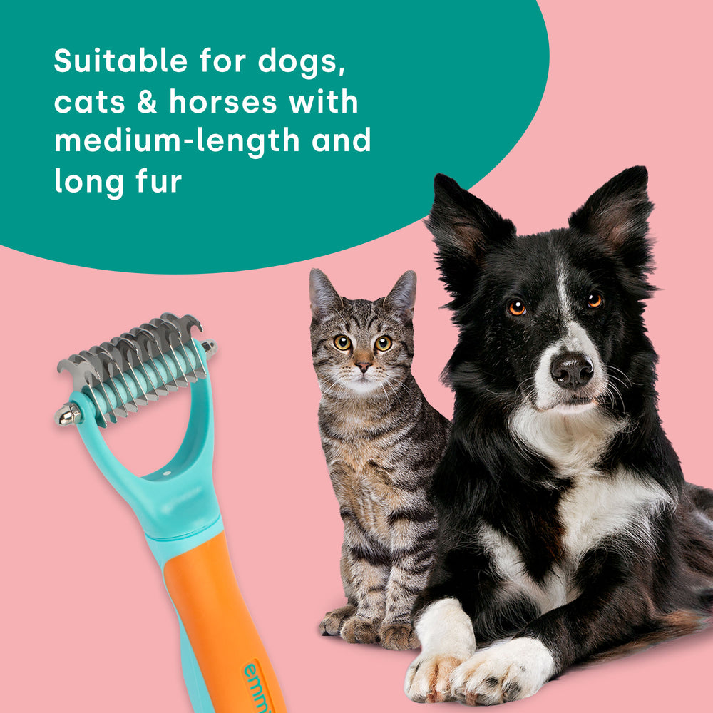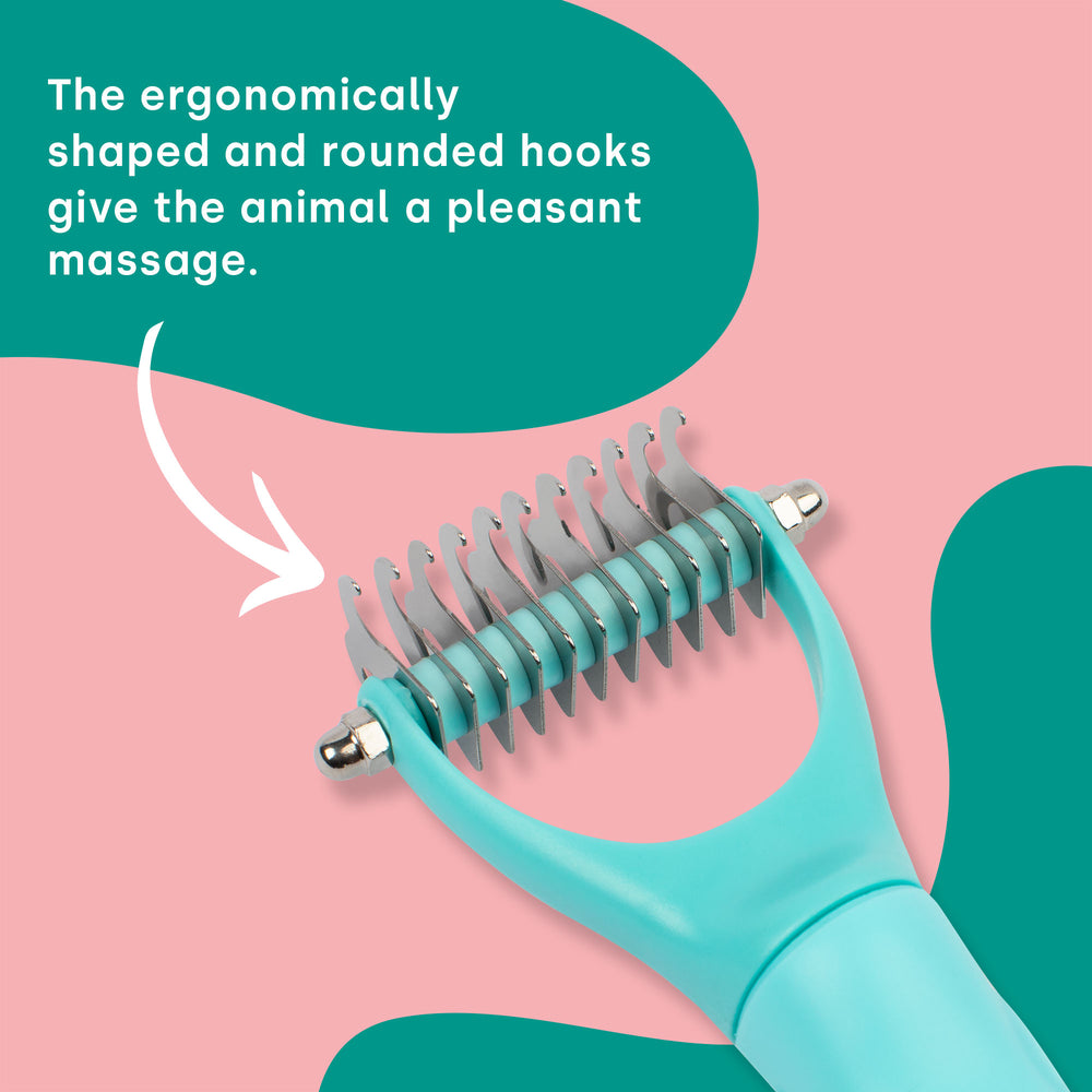 Gracias a las cuchillas, el pelaje superior de tu mascota está protegido. Con el cepillo para subpelos H1 de emmi-pet, la eliminación de los molestos enredos se vuelve fácil. Adecuado para perros y gatos de pelo medio a largo.