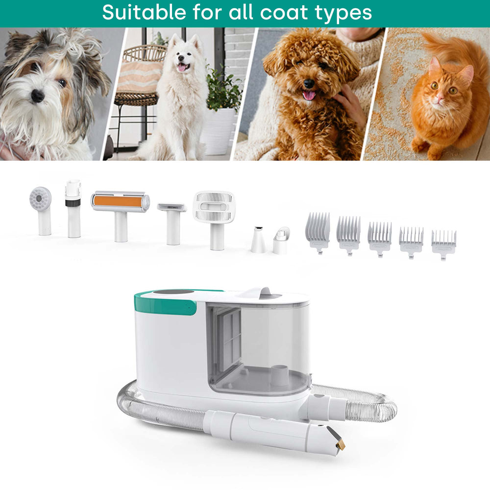 La aspiradora emmi-pet para pelos de mascotas no solo es potente sino también fácil de usar. Los 3 grandesL El contenedor para pelos de mascotas es fácil de vaciar y limpiar. Además de la cortadora, el emmi-pet Grooming Kit Home está equipado con 6 tipos diferentes de cepillos profesionales, incluidos 1x recortadora, 1x peine de aseo, 1x peine alisador, 1x cepillo plano 2 en 1, 1x cepillo con rodillo para pelo de mascotas y 1x cepillo de masaje. El emmi-pet Grooming Kit Pro también contiene el recortador de patas y el cortaúñas, el equipamiento perfecto para el cuidado de las patas. Los accesorios están especialmente diseñados para mascotas y, por lo tanto, son adecuados para diferentes tipos y longitudes de pelaje en perros y gatos.