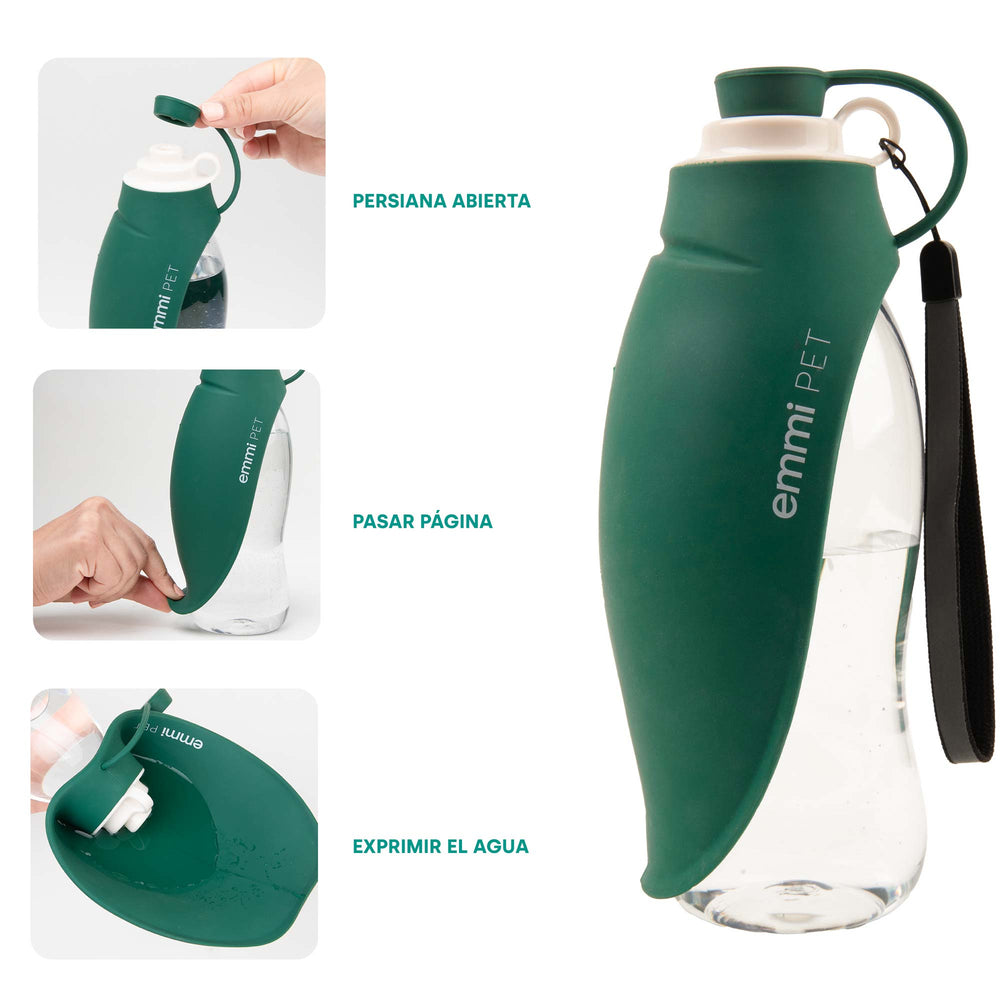 Nuestra botella para perros para llevar está equipada con una correa de mano, lo que garantiza un transporte cómodo. La botella es a prueba de fugas y cabe en cualquier bolso o mochila. La tapa de la botella también sirve como bebedero, para que tu perro pueda beber directamente de ella. El bebedero para perros emmi-pet con una capacidad de 580 ml es el accesorio ideal para garantizar que tu perro tenga suficiente agua incluso cuando está de viaje. Es ligero, fácil de manejar y adecuado para perros de todos los tamaños.