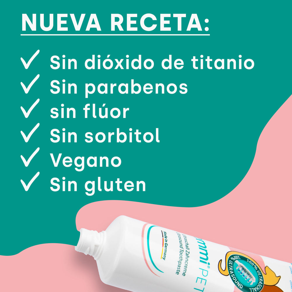 Nuestra última fórmula está completamente libre de dióxido de titanio, sorbitol, flúor y parabenos. En cambio, confiamos en ingredientes naturales que se combinan en un proceso de producción moderno para maximizar la tolerabilidad y crear un producto natural. Esto es especialmente importante para las mascotas que son sensibles a ciertos productos químicos.