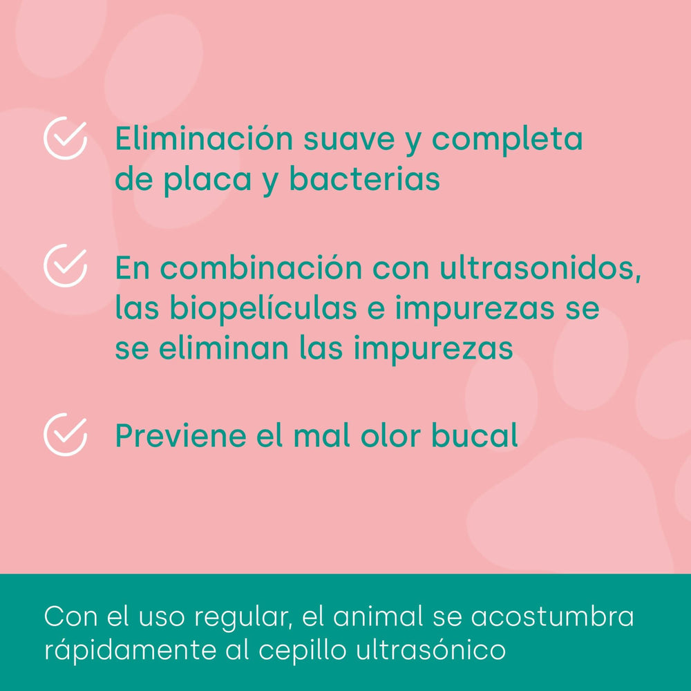 La pasta de dientes ultrasónica para animales emmi-pet ofrece numerosas ventajas que la convierten en una excelente opción para el cuidado dental de su mascota: Limpieza suave sin abrasión: Gracias a los ultrasonidos, ya no es necesario el cepillado abrasivo de los dientes. El valor RDA (abrasión relativa de la dentina) es 0, lo que significa que la pasta de dientes es especialmente suave con el esmalte y las encías de su mascota. Eliminación eficaz de biopelículas y bacterias: la tecnología de microburbujas garantiza que incluso la placa y las bacterias más persistentes se eliminen sin ejercer presión mecánica sobre los dientes. Prevención de enfermedades de dientes y encías: Una limpieza suave pero profunda preserva las funciones protectoras naturales de los dientes, reduciendo significativamente el riesgo de enfermedades de dientes y encías.Combatir el mal aliento: el uso regular de la pasta de dientes emmi-pet ayuda a prevenir el mal aliento al reducir la cantidad de bacterias que causan el mal olor.