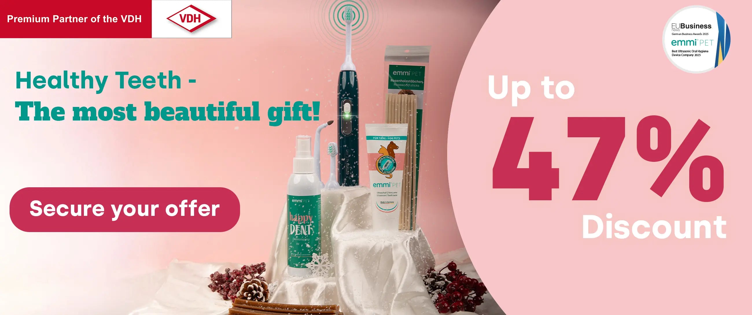 El cuidado dental es una parte esencial de la salud general de su mascota.Muchos dueños de mascotas no son conscientes de los efectos de la pobre higiene de los dientes, que pueden variar desde mal aliento hasta infecciones de las encías hasta graves consecuencias.Con los productos innovadores de Emmi PET, puede prevenir y garantizar efectivamente el bienestar de su favorito.